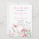 Hermosa invitación de boda con flores silvestres en rosa y mariposas lindas. Perfecta para una boda de primavera o verano. Las palabras se pueden cambiar para adaptarse a tus propios detalles o requisitos
