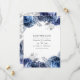Tarjeta de boda de flores azules y blancas con acentos de plata para guardar la fecha con foto opcional en el reverso. Ideal para cualquier tema o boda de jardín.