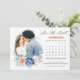 Tarjeta de fecha de guardado de foto de boda floral rosa azul marino con elegante ramo de azul marino, azul real, blanco, rosa gardenia, hortensia y hojas de eucalipto verde salvia. Por favor, contácteme para cualquier ayuda en personalización o si necesita cualquier otro producto con este diseño.