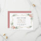 Diseño de tarjeta elegante con vegetación ligera en acuarela, flores rosadas polvorientas y blancas, marco dorado falso, sobre fondo blanco. En la parte posterior, flores, nombre y evento sobre fondo rosa polvoriento. Utilice la herramienta Personalizar para agregar su información. Para artículos coincidentes, visite mi Colección de Flores Rosa Polvorienta.