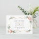 Diseño de tarjeta elegante con verde aéreo en acuarela, flores de rosa polvorienta y blancas, marco dorado falso, sobre fondo blanco. En la parte posterior, flores, nombre y evento sobre fondo de rosa polvorienta. Utilice la herramienta Personalizar para agregar su información. Para artículos coincidentes, visite mi Colección de Flores de Rosa Polvorienta.