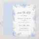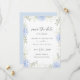 Haga que sus invitados sepan la fecha de su boda con estilo con este romántico anuncio de boda floral, que presenta una delicada hortensia en acuarela y tipografía elegante. El diseño floral azul suave enmarca los nombres de la pareja de manera hermosa, creando un aspecto atemporal y sofisticado. Perfecto para bodas de jardín, celebraciones de primavera o cualquier evento con un tema floral o rústico.