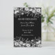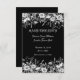Un borde floral en blanco y negro encierra la parte superior e inferior de esta invitación.