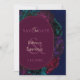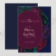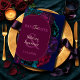 Una tarjeta romántica de 'save the date' floral en tonos de joya que presenta ricas flores de color burdeos, ciruela oscuro y esmeralda verde sobre un fondo azul profundo. La oscura paleta crea un tono gótico y romántico, mientras que la composición botánica moderna hace un anuncio audaz y elegante para tu próxima celebración.