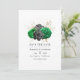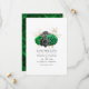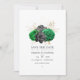 Elegante invitación de boda floral de color verde, negro y dorado falso con un patrón de diamante reversible personalizable a los detalles de su evento.