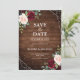 Reserva La Fecha Boda floral geométrica de madera rústica en burgun