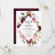 Tarjeta elegante y sombría de estilo rústico con flores botánicas de ciruela púrpura para primavera con un ramo de rosas y peonías de acuarela pastel suave en tonos de burgundy, marsala, rojo vino, púrpura, ciruela, rosa sonrosado, melocotón y crema con hojas botánicas verdes exuberantes y hojas de eucalipto y marco geométrico con brillo dorado. Una elección de diseño moderno que es perfecta para bodas temáticas de ciruela púrpura y rosa sonrosado en primavera y verano. Por favor, busque más diseños y variaciones coincidentes en mi tienda "blissweddingpaperie". Y no dude en contactarme para personalizar o para artículos coincidentes.