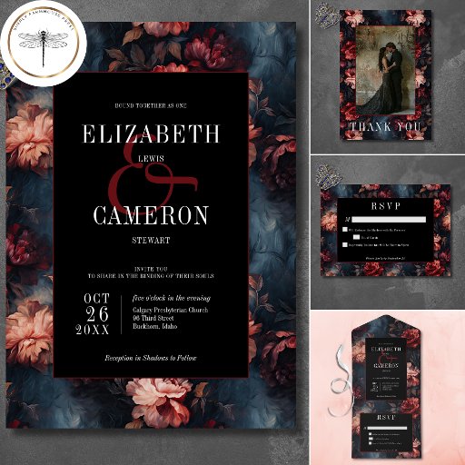 Dark Gothic Vintage Red & Pink Floral WeddingDiseñado por Kathe Santillo