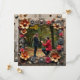 Boda romántica Salven las tarjetas de fecha. Arcos metalizado de oro con temática de Steampunk, flores rosadas y doradas y fondo rústico de madera afligida de color blanco. Carga tu imagen favorita en el área de personalización y edita el texto de la parte posterior para añadir tu propia información de boda.
