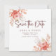 Comparta su fecha de boda con esta rústica boda floral ruidosa, salvo la tarjeta de cita. Con sus suaves rosas acuarelas, su follaje terrenal y su elegante tipografía de escritura, este diseño es perfecto para bodas románticas, bohemias o de jardín.