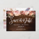 Boda rústica floral salva la tarjeta de fecha con un fondo único de madera y elegantes luces de cuerda con flores de acuarela. Este diseño se puede cambiar según sus preferencias.