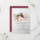 Invitación de boda rústica de granero campestre de Borgoña y melocotón diseñada para ser personalizada rápida y fácilmente según los detalles de su evento. Ideal para cualquier tema o boda de jardín.
