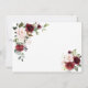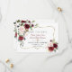 Diseño de tarjeta elegante con flores de acuarela carmesí rubor y hojas verdes, un marco dorado falso, divisor floral, sobre un fondo blanco. En la parte posterior, los mismos ramos de flores. Utilice la herramienta Personalizar para agregar su información, cambiar las fuentes y los colores de las fuentes. Para artículos coincidentes, visite mi Colección de Flores Carmesí Rubor.