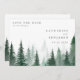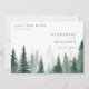 Personalice fácilmente su boda y guarde las tarjetas de fecha con esta plantilla editable. Presenta un diseño minimalista y elegante de tipografía con fondo de árboles de acuarela.