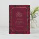 Boda elegante Guardar la tarjeta de fecha en un estilo más formal con un diseño clásico de marcos dorados y texto con un borde paisajista ornamentado. Este ejemplo añade un toque moderno con su fondo de burdeos suaves. Añade los detalles de tu evento en una fuente serif para su atractivo tradicional. Busque ID767 para ver otras opciones de color para este diseño.