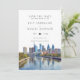 Esta elegante tarjeta de anuncio de boda con la silueta de Filadelfia en acuarela se puede personalizar con su información en tipografía moderna y una foto especial en el reverso. Diseñado por Thisisnotme©