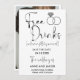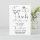 La tipografía en blanco y negro es graciosa: "Las bebidas gratis (y nos casamos) salvan las fechas. Añade tus detalles al frente y una foto al fondo. Si tienes una foto horizontal que te gustaría usar en lugar de una vertical - contacta conmigo y puedo hacer el cambio por ti y enviarte un enlace de pedido personalizado.