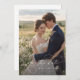 Anuncie a su próximo boda con nuestro Modern Caligraphy Script Photo Wedding Save the Date. Esta tarjeta muestra una elegante foto de la pareja, ambientada en un tranquilo entorno al aire libre. El diseño contemporáneo, a la vez intemporal, se realza con un sofisticado guión caligráfico escrito a mano, que le aporta un toque personal a su invitación. El diseño sencillo y minimalista, combinado con el tipo de superposición negro, garantiza que la fecha sea elegante y moderna.