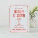 Esta moderna y retro funky Boda minimalista Guardar la plantilla de fecha es genial para usted. Si busca una boda bonito, elegante y fácil de personalizar, guarde la plantilla de fecha. Una plantilla sencilla y muy elegante. Que presenta fondo azul cielo claro vintage. Con un diseño de texto rojo vivo escrito a mano, caligrafía escrita a mano y cóctel de mano. Y foto de personalizable en la parte de atrás. Agarra esta elegante boda, ahorra la fecha y haz que tus invitaciones estén realmente comprometidas.