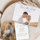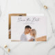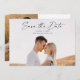 Modern Script Photo Wedding Guardar la tarjeta de fecha. La parte posterior incluye una segunda foto con detalles adicionales. Haga clic en el botón de edición para personalizar este diseño con sus fotos y detalles del boda.
