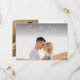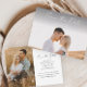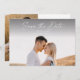 Modern Script Photo Wedding Guardar la tarjeta de fecha. La parte posterior incluye una segunda foto con detalles adicionales. Haga clic en el botón de edición para personalizar este diseño con sus fotos y detalles del boda.