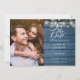 Este rústico salva la tarjeta de fecha con luces de cuerda, tu foto especial y tipografía elegante sobre un fondo rústico de paneles de madera azul. Diseñado por Thisisnotme©