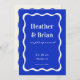 Retro Blue Wavy Squiggle Fotos Únicas Boda Guardar La Fecha
