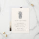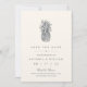 Aburrida y elegante, nuestra Island Vintage Pineapple guarda la tarjeta de fecha con un ilustracion de piña en la parte superior con la fecha guardada en la escritura tradicional de bloques y guiones. La impresión gris azul oscuro y ahumado sobre un fondo blanco cálido proporciona un acabado formal y elegante. Las tarjetas se revierten a una foto vertical o retrato de sangre completa con sus iniciales y fecha de boda superpuesta. Nos encanta este estilo con el papel tradicional de la doncella para un aspecto y un toque de lujo.