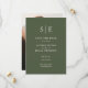 Esta moda de boda minimalista de reserva de la tarjeta puede ser personalizada con sus iniciales de monograma y detalles del día de la boda en un fondo verde oliva. Con tu foto especial al revés. Diseñado por Thisisnotme©