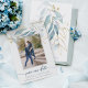 ¿Esperando agregar todo tipo de romance a tu día de bodas? Ya sea que planee un boda al aire libre inspirado en el jardín o simplemente le guste agregar un toque botánico a su boda, los detalles florales añaden un elemento de elegancia a la papelería de su evento. La vegetación suave y azul acuático con acentos dorados muestra tu lado colorido y tu estilo artístico. El diseño de acuarela acentúa la parte superior de Save the Date, lo que lo convierte en una encantadora introducción a tu boda azul y dorado en cualquier época del año.