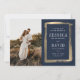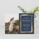 Boda del marco dorado pintado Photo Save the Dates es un diseño elegante y moderno que presenta un marco falso de pinceles de Relieve metalizado y texto clásico editable y foto vertical. Haga clic en el botón Editar para personalizar este diseño con su foto y detalles personales.