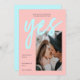 Una moderna tarjeta Save the Date con una nueva paleta de color neón de color verde menta y rosa, con gran negrita caligrafía Script para Sí y tu imagen de elección. Todos los colores de esta foto Guardar la plantilla de fecha se pueden cambiar! Una invitación única pero asequible a las parejas modernas.