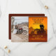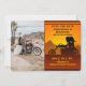 Esta foto de la invitación Save the Date boda muestra a una pareja de siluetas montando una motocicleta con un fondo de puesta de sol o amanecer.