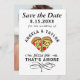 Envíe a su familia y amigos esta divertida boda, guarde la tarjeta de fecha para anunciar su compromiso. Esta plantilla de diseño de moda incluye dos rebanadas de deliciosa pizza con queso, pepperoni, pimientos y setas. En la parte superior se lee " Guardar la fecha para el boda de" con los nombres que se van a personalizar. Debajo de las rebanadas de pizza se lee "pizza pie That's Amore" La parte trasera de la tarjeta tiene una foto para que la reemplace con la tuya para una de las clases, ¡excepto la fecha que tu familia y amigos adorarán! ¡Felicitaciones por tu compromiso! Diseñado por la artista ©Susan Coffey.