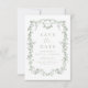 Anuncie su día especial con un floral de inspiración victoriana para guardar la fecha en un elegante verde sabio. Este diseño de inspiración francesa presenta intrincados motivos florales que evocan el romanticismo y la sofisticación intemporales. El suave y polvoriento color azul aporta un toque sereno y refinado, perfecto para marcar el tono de una boda clásica y elegante. Ideal para parejas que buscan un estilo elegante pero único, este hotel permite que la fecha combina el encanto vintage con la belleza moderna, asegurando que sus huéspedes se anticipen a una celebración verdaderamente especial.