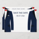 Tarjetas de guardar la fecha de boda gay azul y blanco con texto modificable