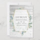 Ahorre la fecha de la boda del bosque salvaje de eucalipto herbario con marco geométrico dorado diseñado para ser personalizado rápida y fácilmente a los detalles de su evento.
