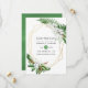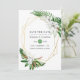 Tarjetas de aviso de boda de hojas tropicales y magnolias de acuarela con un marco geométrico dorado personalizable a los detalles de su evento.