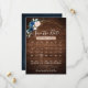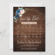 Tarjeta de calendario de boda geométrica floral azul marino oscuro para guardar la fecha con un ramo elegante de hojas de eucalipto azul marino, azul real, blanco, rosa rosado y verde salvia y marco geométrico neutro con brillo elegante sobre fondo de madera rústica. Por favor, contácteme para cualquier ayuda en la personalización o si necesita cualquier otro producto con este diseño.