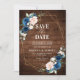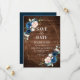 Reserva La Fecha Boda geométrica de madera rústica azul marino rubo
