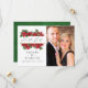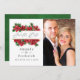 Tarjeta de aviso de boda rústica de moda de Navidad con marco geométrico dorado y tipografía manuscrita con campanas de trineo, flores de poinsettia, acebo, muérdago y pino.