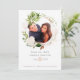 Guardar la fecha de boda trendy con aquarela de verde con flores de rosa oro y rosa rubor en un marco geométrico.
