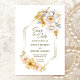 Hágale saber a tus amigos y familia de tu día especial en estilo con esta elegante carta geométrica floral blanca y dorada ahorrando la fecha. Las plantillas de texto fáciles de usar hacen que agregar toda la información necesaria sea una tarea rápida y sencilla. Con una variedad de tipos de papel y estilos de esquina entre los que elegir, puede crear tarjetas verdaderamente únicas que reflejen su individualidad, junto con la opción de descargar si prefiere un formato digital.