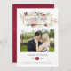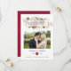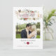 Tarjeta de foto de boda rústica boho de rojo borgoña (marsala) y peonías blancas con marco geométrico dorado diseñada para ser personalizada rápida y fácilmente según los detalles de su evento.