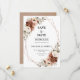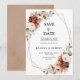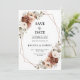 Tarjeta de aviso de boda con tema floral terroso naranja terracota elegante con bouquet elegante de rosas de color terracota, beige, blanco, salvia, peonías y hojas de eucalipto. Por favor, contácteme para cualquier ayuda en personalización o si necesita algún otro producto con este diseño.