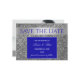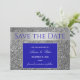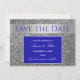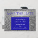 Invitación de lujo, chic, glitter silver y azul real para boda con foto y letra de caligrafía moderna para guardar la fecha.