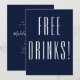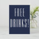 Funny azul marino y blanco Salven la tarjeta de fecha con bebidas gratis en la parte delantera y Oh, y por cierto, ¡nos estamos casando! en la parte trasera. Personaliza con nombres en escritura y ciudad, estado y tu fecha especial de boda para asegurarte de que la gente esté lista para celebrar contigo!