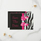 Tarjetas de nota plana personalizadas para guardar la fecha de la boda impresas en el papel de invitación de su elección. Elegantes lazos impresos personalizados en negro y blanco con rayas de cebra y rosa caliente para guardar la fecha de la boda con patrón de rayas de piel de animal de cebra en negro y blanco impreso, imágenes de lazos y cintas rosadas brillantes y femeninas y diamantes digitales brillantes joyas en un fondo negro con texto rosa caliente en letra cursiva elegante. Tenga en cuenta: todas las invitaciones en Zazzle tienen imágenes impresas planas. Estas tarjetas elegantes, de moda, divertidas y glamurosas están decoradas / impresas en ambos lados. Hermosas, chic, modernas y personalizadas tarjetas para guardar la fecha de la boda. El texto, la fuente y el color de la fuente se pueden personalizar para satisfacer sus necesidades. Si necesita ayuda para personalizar su producto, por favor contácteme a través de mi tienda