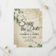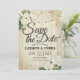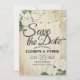 Guardar las plantillas de la tarjeta de invitación de boda de fecha - Elegante guión con hidrángulos blancos luces florales y de cadena sobre fondo rústico de madera blanca. ¡Un Diseño Perfecto Para Tu Gran Día! Todos Los Estilo De Texto, Los Colores Y Los Tamaños Se Pueden Modificar Para Ajustarse A Sus Necesidades.