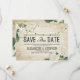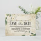 Guardar las plantillas de la tarjeta de invitación de boda de fecha - Elegante guión con hidrángulos blancos luces florales y de cadena sobre fondo rústico de madera blanca. ¡Un Diseño Perfecto Para Tu Gran Día! Todos Los Estilo De Texto, Los Colores Y Los Tamaños Se Pueden Modificar Para Ajustarse A Sus Necesidades.